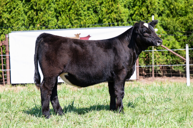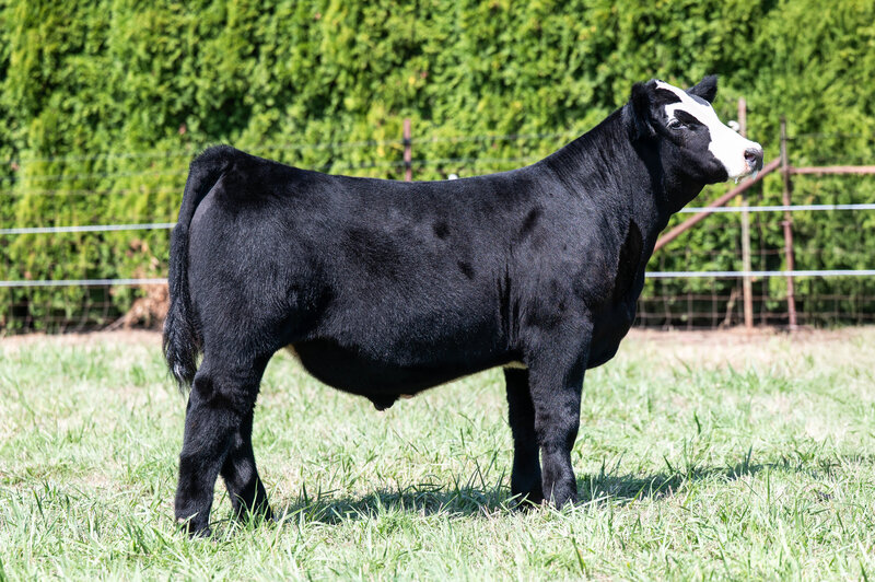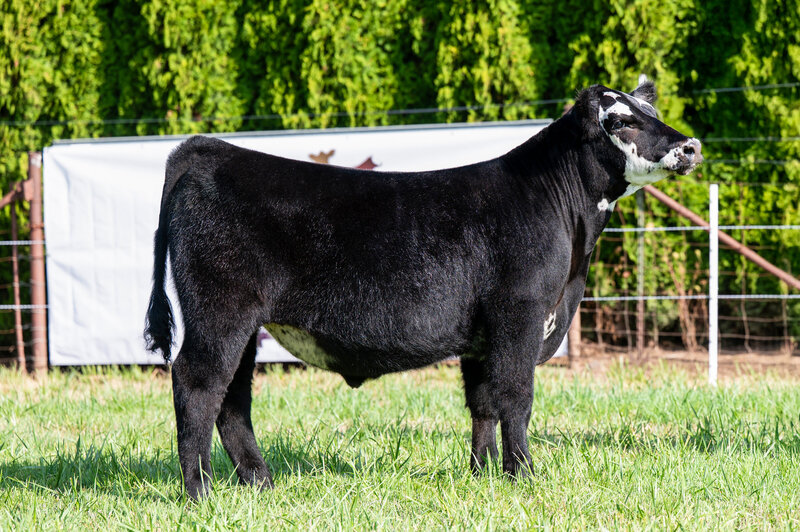 Patch has a perfectly placed heart shaped patch on his head and if you can hold a pair of clippers and get this one’s big hair right, you will be able to reap some serious rewards in the show ring. This is a big muscled, square built steer that comes ultra intriguing in his look from the side. It wouldn’t be surprising if he catches a lot of attention on sale day and in the showring after.